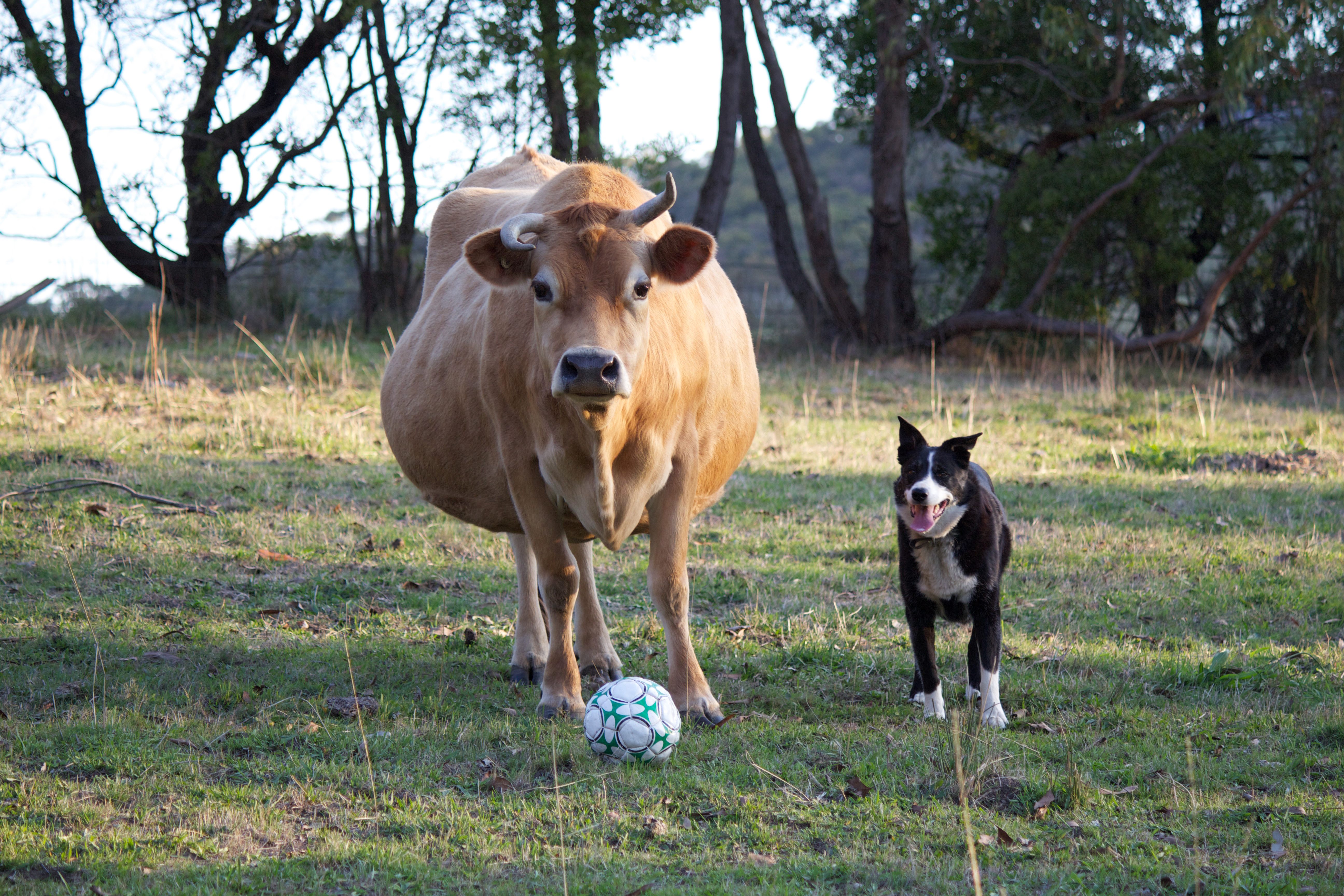 Mini the cow about to enjoy a bit of the beautiful game